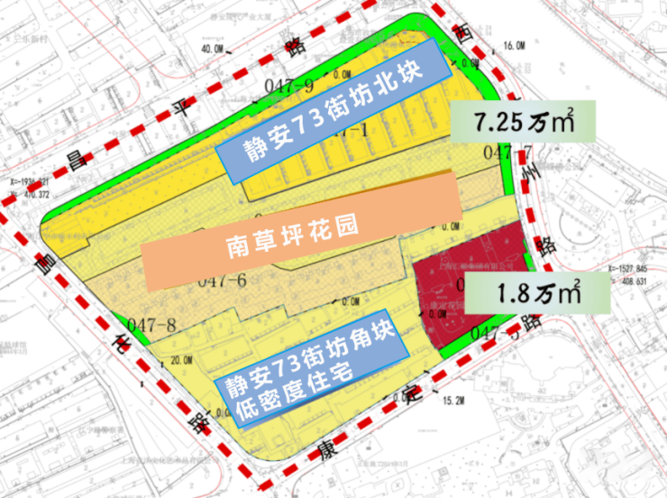 73街坊共分为南北两块,是老静安为数不多的纯住宅地块,北地块的高层住宅部分共将新建5栋8层至32层的住宅楼,总住宅开发体量共约7.25万㎡,总套数仅有468套。