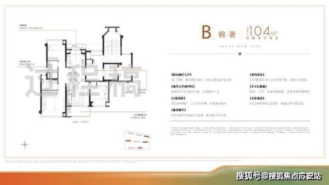 三室两厅两卫(约104㎡):