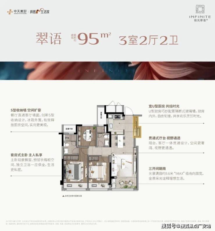 全盘共434套可售房源,只设置建面约95㎡、103㎡两个面积段,比大部分楼盘的起步户型节制了至少10㎡,足够省出一辆车了。同时,藉由“阳台只计一半面积”的优势,让每一套房子都有着90%以上的使用率!