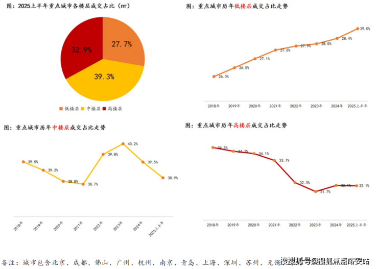 报告认为,低楼层成交占比提升一方面得益于近年来对老旧小区加装电梯,绿化升级,老旧小区改造等促使购房者对老旧小区购买意愿增强;另一方面,也反映出住房消费从“面子消费”向“里子消费”的转变。随着城市化进程和人口结构变化,这一趋势在老龄化严重、生活节奏快的地区可能进一步强化