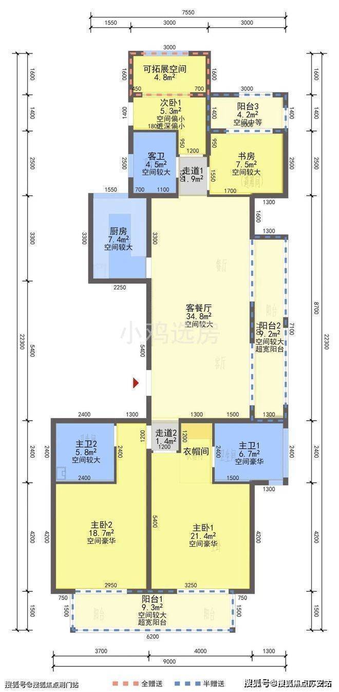 像栖霞湾166㎡的户型,单是赠送面积就有16.15㎡。三阳台设置,不仅给居住提供了更多的瞰景、休闲选择,在可打造的基础上,也留给住户更多的想象空间。
