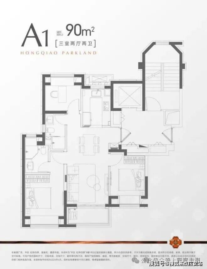 90㎡ 3 房 2 厅 1 卫:总价约 373 万起