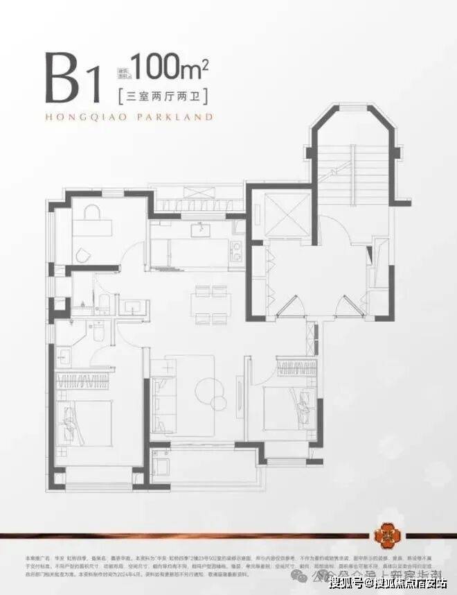 100㎡ 3 房 2 厅 2 卫:南北通透,主卧套房