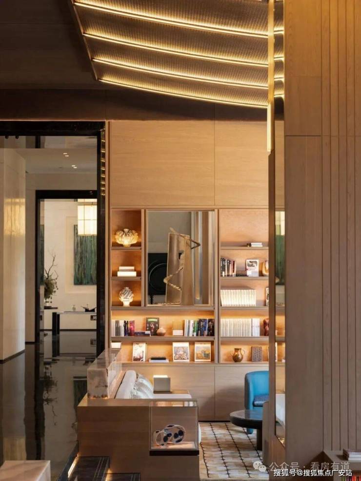 具体来看:架空层和会所空间功能齐全,整合了书吧、轻办公、社交、运动4个最核心的功能区,整体低调又奢华。