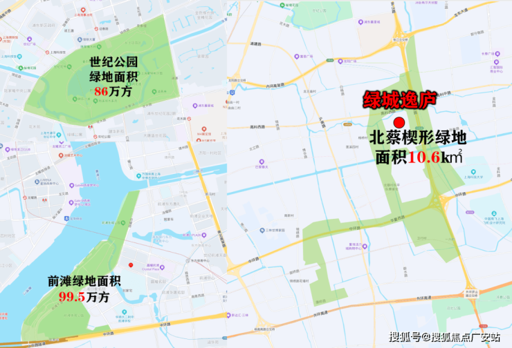 同时,绿城·逸庐所处的北蔡楔形绿地,规划约10.6k㎡珍稀城市绿地资源,这个体量约是世纪公园的7.5倍,前滩的3.7倍!预计2027年年底完工!