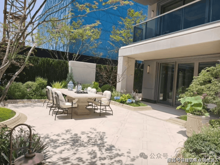 中庭景观借鉴法式园林的对称美学,构筑中轴景观。