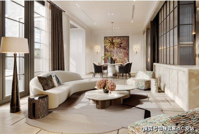 户型与风格:共117席,面积约100㎡,17层高定建筑,以曲线元素打造简约轻奢风格,融合国际前沿设计语言,强调采光与空间流动性。