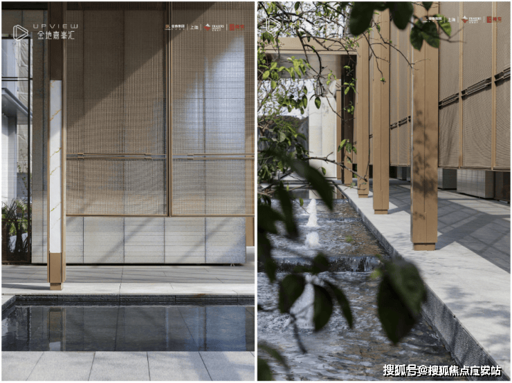 归家路上漫步于水榭光廊,阳光透过格栅在地上形成斑驳的光影,与单侧的水景波动的涟漪互动,让人在潜移默化中,获得身心的舒缓。