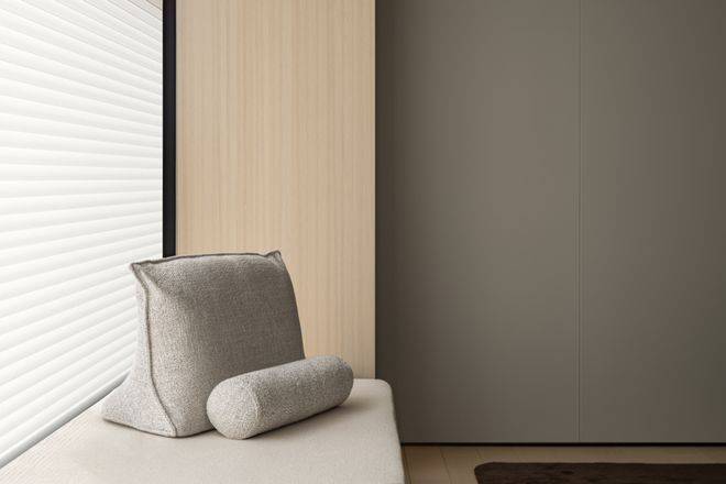 中央的B&BCamaleonda模块组合沙发,以岛状布局重构空间逻辑,双向陈设的低椅背设计。一面朝向书柜电视墙,一面衔接餐厨区。让场景切换随心意而生,既保持空间通透感,又以功能分区提升使用效率。