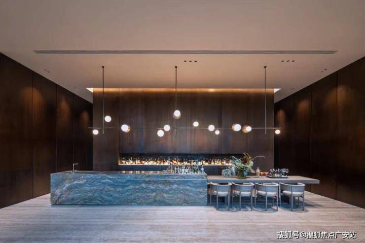 一楼有私宴厅,配有备餐间,大落地窗可以看社区景观;B1有泳池、健身设施、二楼规划有阳光草坪、落日酒吧,还有下沉式庭院,完整的售楼处实景展示可能要等到6月中旬。