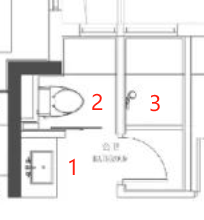 S墙现在比较常见,我们就不展开说了。常见的干湿分离户型,就是一人在台盆处,另一人在淋浴间/如厕;这个三分离的卫生间,看下图布局,是可以做到同时3人使用而不互相打扰的。ps:这个一卫户型也有美妆冰箱。