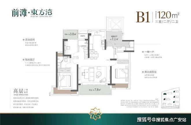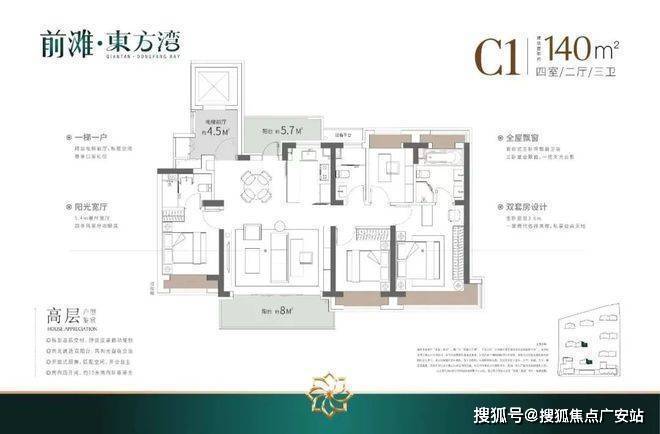 主力户型为建面100-175㎡的3-4房,得房率86%,部分户型带双阳台、主卧套房。