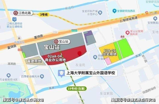 项目地处宝山杨行板块,是19号线宝山站(在建)TOD综合体地块。地块用途为商业、住宅、办公、餐饮旅馆混合,其中13A-01为住宅,容积率2.3,装修标准2500元/㎡。