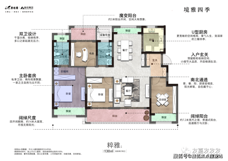 境雅四季以其独特的美的中央空调、德国威能地暖和法国爱的士新风系统闻名于业界.这个高端住宅项目位于高层98㎡/洋房120、130㎡的宽敞空间中,让您尽享至尊舒适.