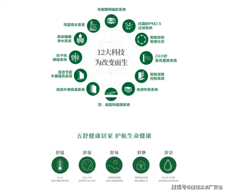江湾金茂府更是在金茂经典的「12大绿金科技」基础上再度优化,升级为更节能、更安静、更安心的“五舒科技系统”。