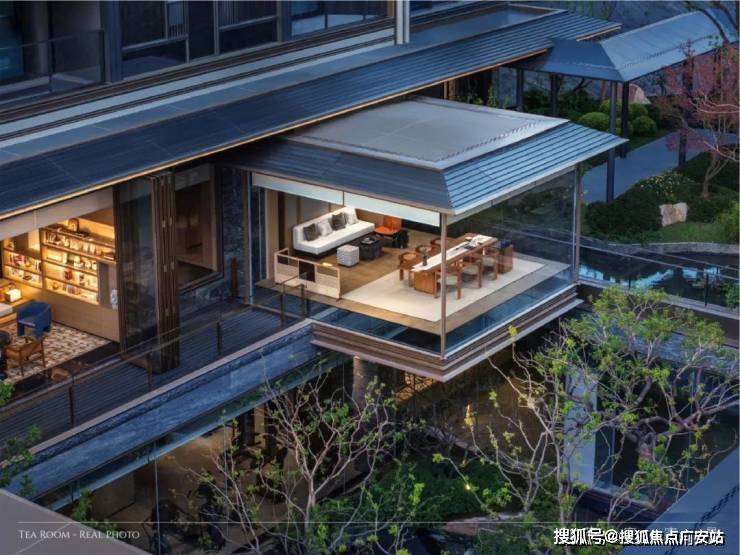 叠拼已经做出实景展示,可以看到绿城将屋檐、立柱、栏杆等东方古典建筑符号进行了现代化转译,并大面积铺陈于建筑之上,让传统东方美学妥帖安放,又平添现代摩登质感。