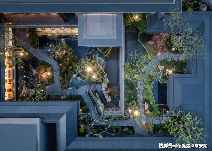 通过下沉会所庭院,将传统平面绿化转化为垂直的多层次园林空间,打造出了当代立体山体水景观,身处其中在步履起承转合间,串联起一幕幕诗画风景。