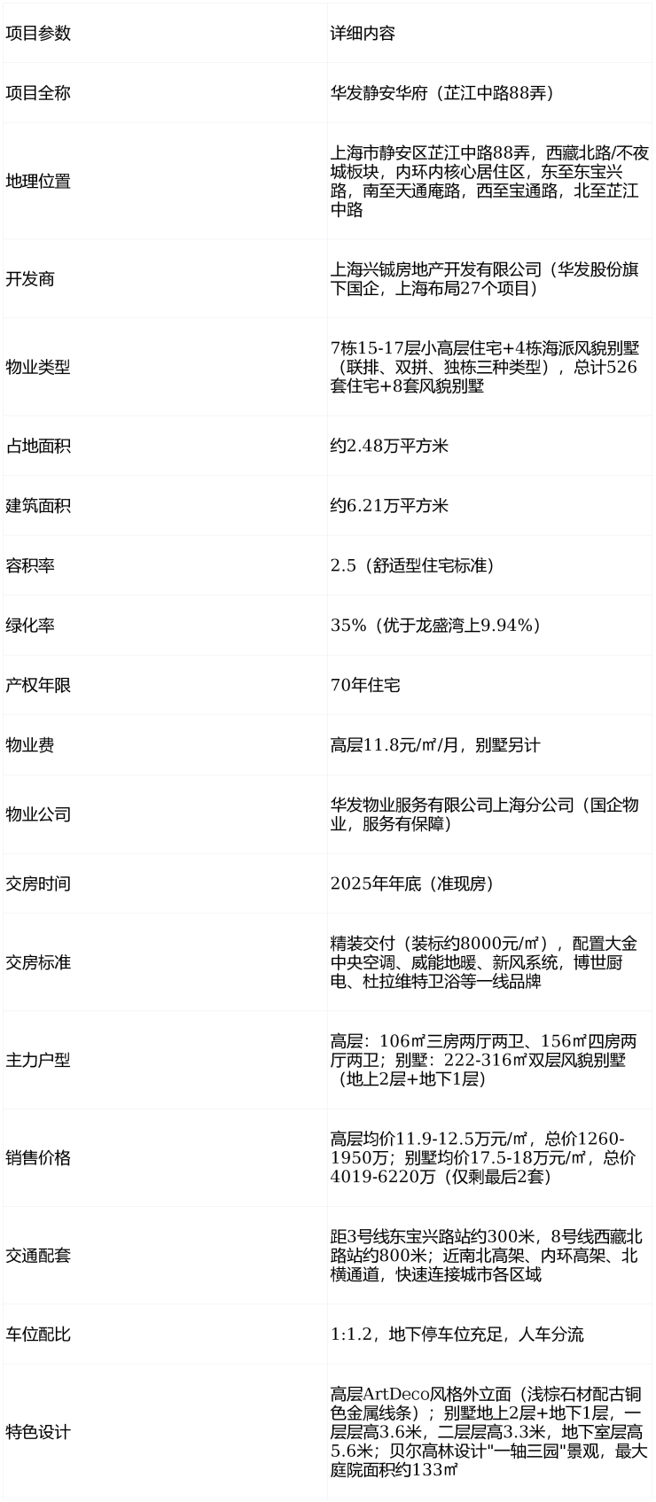 华发静安华府作为静安区内环内舒适型高端住宅,以国企品质、2.5低容积率+35%高绿化率、稀缺双层风貌别墅和成熟配套资源为主要卖点,适合追求居住舒适度与生活便利性的高端改善型买家。项目高层产品性价比优于龙盛湾上,别墅产品则填补了内环内海派风貌别墅的市场空白。然而,项目存在总价门槛高、社区规模小、部分楼栋受噪音影响等问题,与苏河湾核心区项目相比地段价值略逊一筹。对于预算充足、看重居住舒适度与国企品质的改善型买家,项目是优质选择;但对于追求苏河湾核心区位与地标价值的塔尖人群,需谨慎考量。
