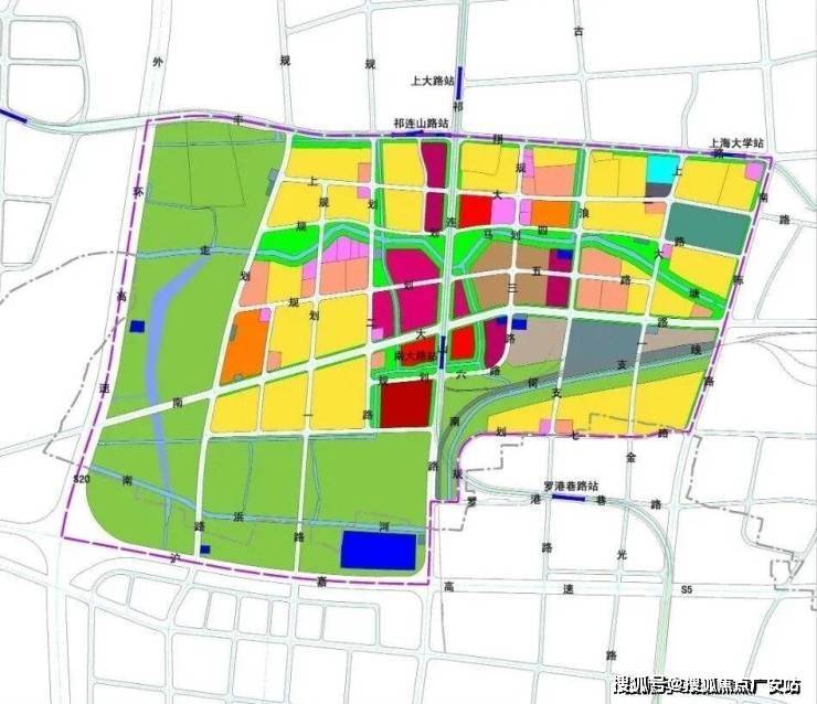 南大地区东至南陈路—南秀路,南至环镇南路—祁连山路—S5沪嘉高速,西至S20外环高速,北至丰翔路—环镇北路,总面积约628.9公顷,其中规划建设用地约608.9公顷。(如下图)
