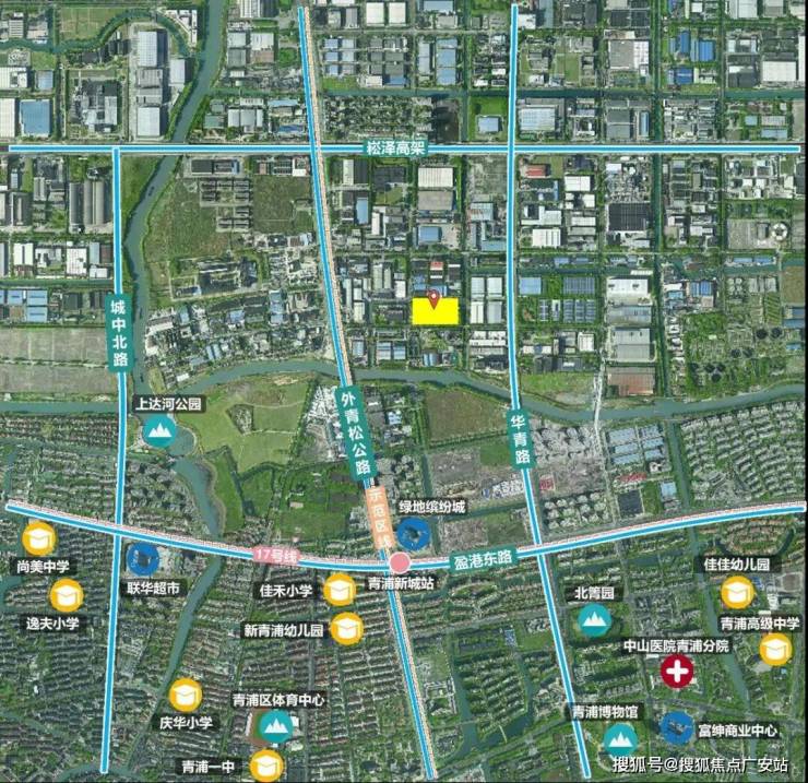 地块距轨道交通17号线青浦新城站1公里,周边拥有崧泽高架、外青松公路、华青路、城中北路、盈港东路等快速路。