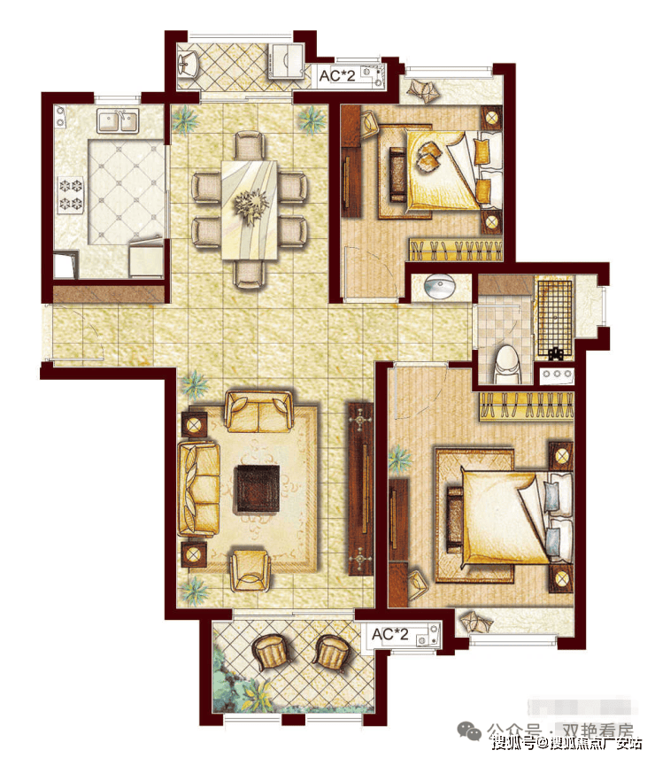 高层户型:88㎡2房2厅1卫