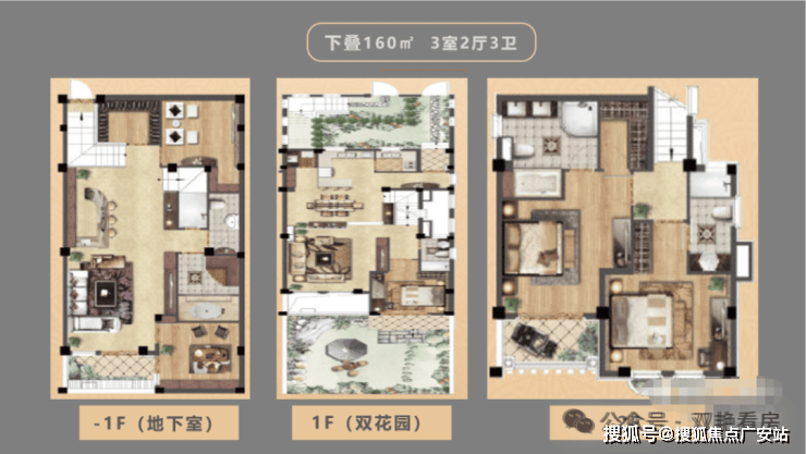 下叠户型是建筑面积160㎡,享有130㎡左右的双层阳光地下室,下叠户型由地下一层、地上两层总共3层空间组成。