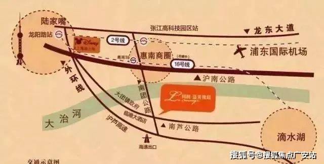 4条高速:S2沪芦高速(全程免费)、G1501绕城高速、S32申嘉湖高速、S3 (目前在建中) 直抵迪士尼。
