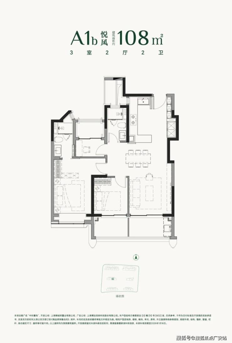 建面约108㎡3房2厅2卫