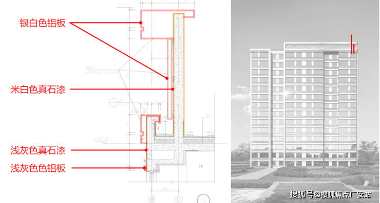 色彩提炼:米白色真石漆与浅灰色铝型材,抽象提取“粉墙黛瓦”的色彩关系。