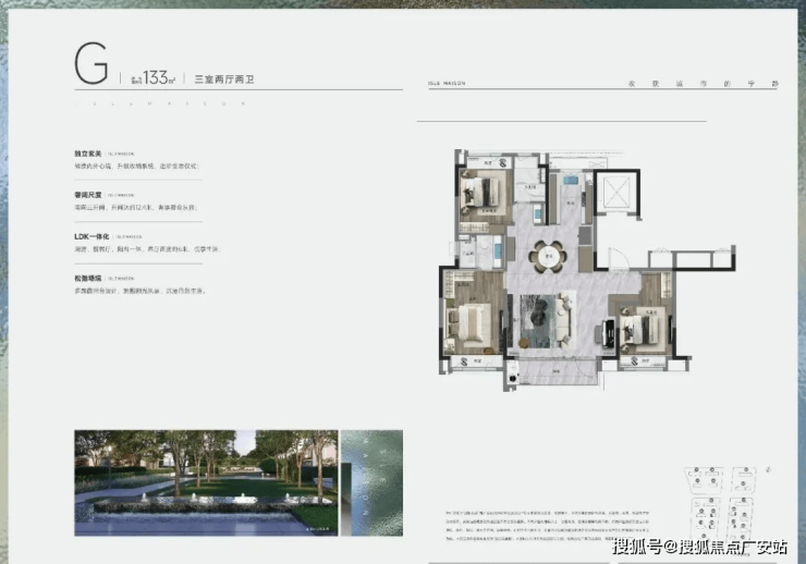 建面约133㎡3房两卫户型图、横厅3+1朝南+南北通透、最低900万级起步