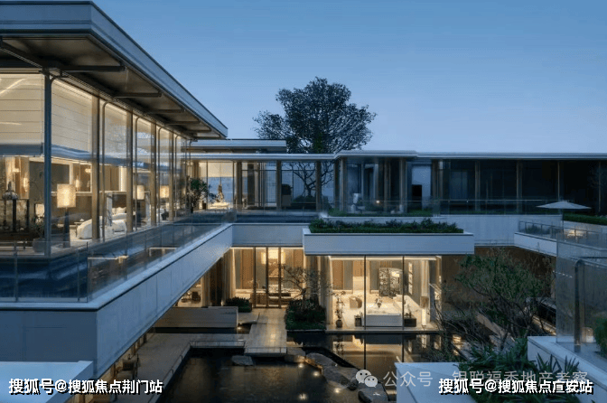 【下沉庭院】庭院巧妙利用约6米的高差,营造出丰富的空间层次感,中央布置大面积立体镜面水景,如诗如画。