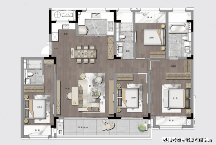 5,本批次房源的建筑面积段在142.89-191.64平,其主力户型: