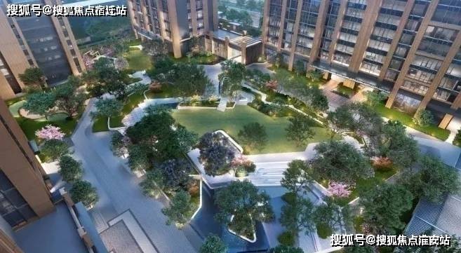 约3500㎡的中心庭院景观,地面整体抬升,去台阶化的设计对孩子、老人等更为友好。配合四季不同的植被,打造一片家门前的四季花园。