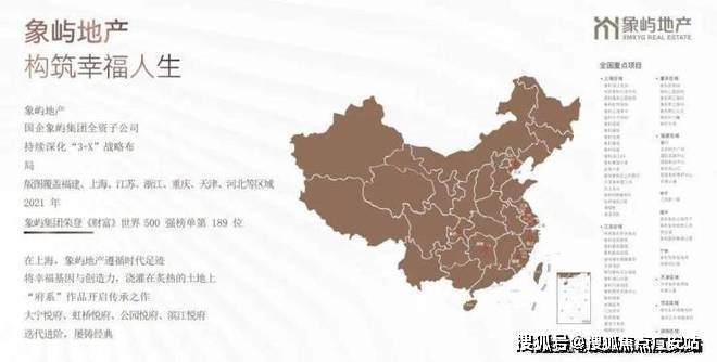 象屿地产,构筑幸福人生国企象屿集团全资子公司,持续深化“3+X”战略布局,版图覆盖福建、上海、江苏、浙江、重庆、天津、河北等区域。2022年,象屿集团荣登《财富》世界五百强榜单第160位。