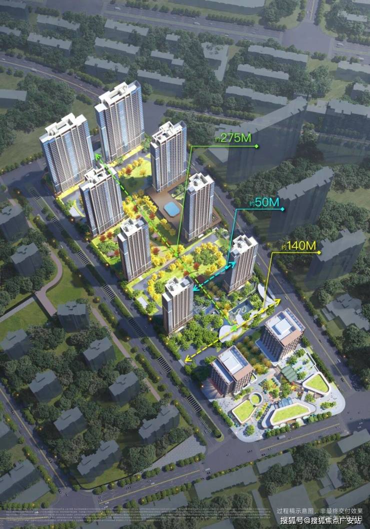 规模指标:占地约3.43万㎡,总建面约12.79万㎡;容积率2.5,绿化率35%;规划8栋18-26层高层,总户数631户;车位配比1:1.4,人车分流