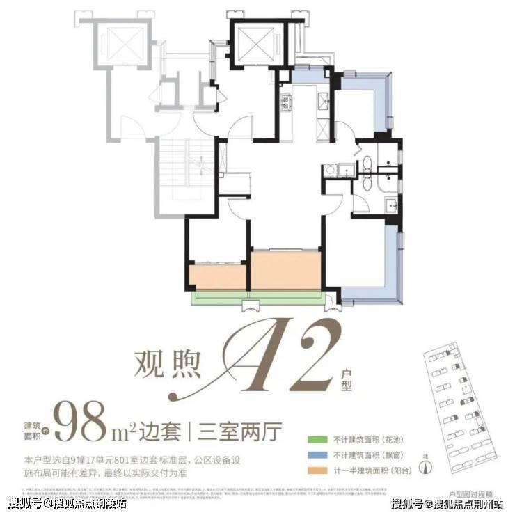 约98㎡3房:类一梯一户、内部飘窗为轻质墙板后期可自行拓展!双阳台+景观花池是核心亮点(市面双阳台户型起步多为约110㎡),整体附赠约23㎡,是罕见的高实得率精致户型。