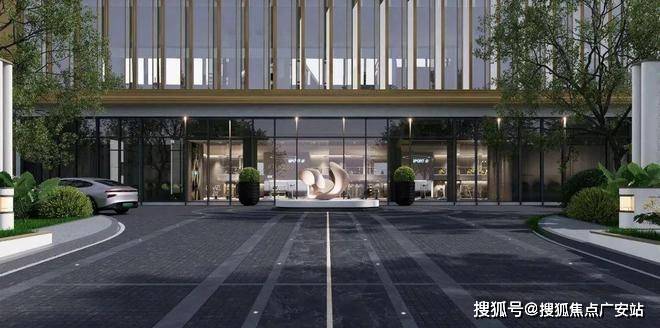 ②东西美学轴:约62米宽超级界面;昂贵艺术雕塑指引归家方向+酒店式归家大堂;以显赫门厅,营造尊崇归家体验;