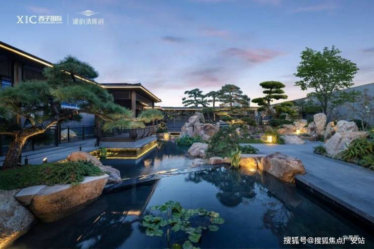 大师级宋风景观:由GTS宋淑华执笔设计“五进式”东方园林,引东沙湖水入园,打造“亭台水榭、曲径通幽”的江南意境,与建筑风格完美融合