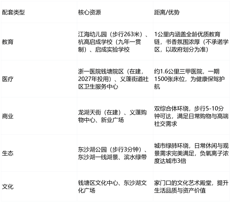 战略枢纽:位于钱塘区江海之城正核心,杭州2035规划重点发展板块,毗邻区政府,与下沙副城、空港新城形成“黄金三角”联动格局