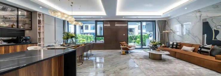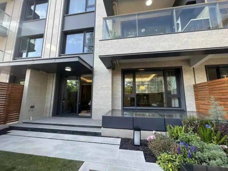 联排别墅新亚洲风格,外立面结合了石材、铝板和玻璃幕墙,简约大气、历久弥新的同时,也让起居空间保证了充足的透光率!