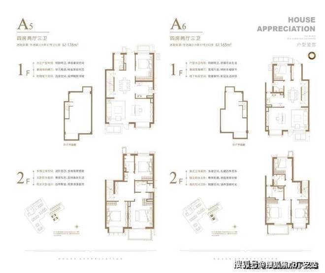 下叠户型,共有三个主力户型,建面约155、163、176㎡下叠。