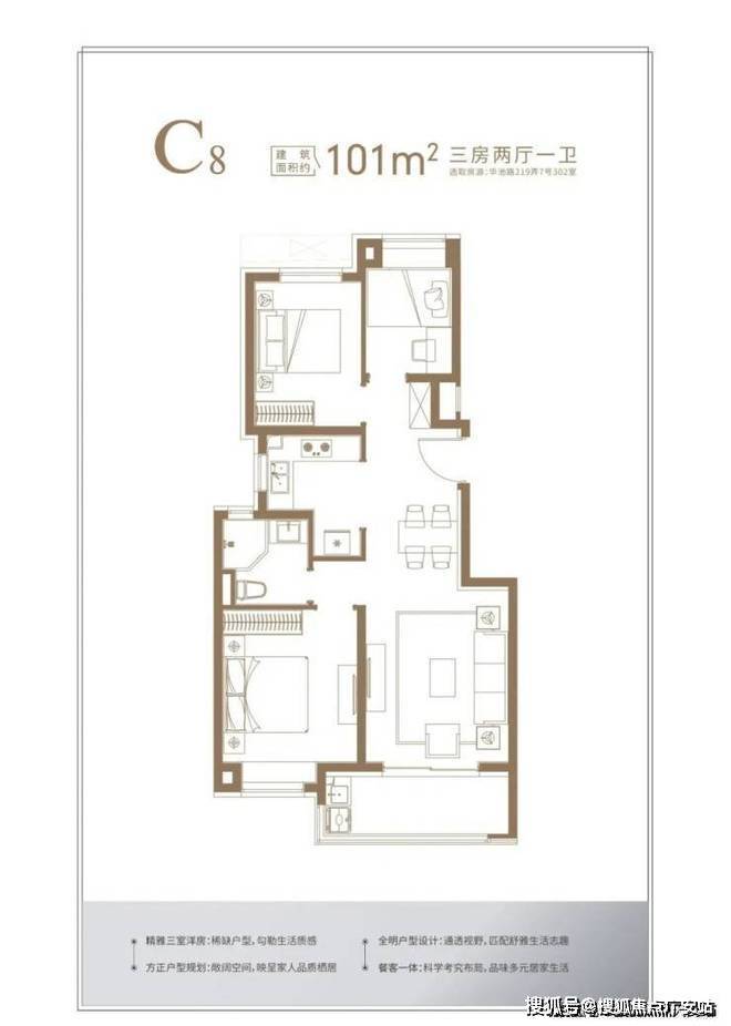 高层产品,包括建面约103-106平3房2厅2卫户型,几个主力户型做的非常不错,迎合了不同需求的购房群体。