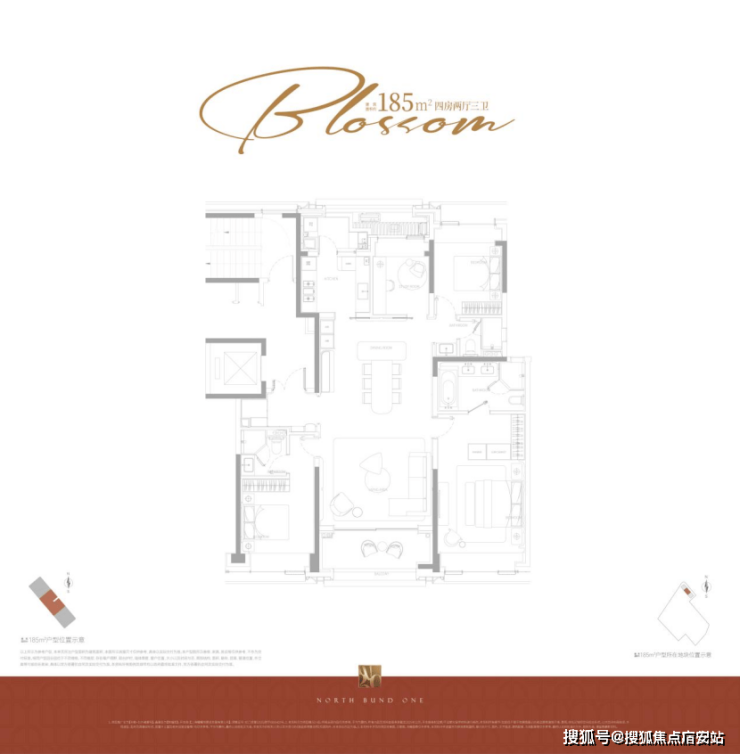 该户型均为边套,拥有更私密的居住体验和客餐厅阳台连续17米的无遮转角景观面,户型尺度更为阔绰,客厅采用转角采光,最大化引入景观;主卧套房尺度奢华。因为建筑立面正面北外滩世界会客厅,东西边套阳台可直观欣赏北外滩的未来城景,东边套部分房源甚至能将陆家嘴“三件套”框入每日窗景;西边套依旧视野通透,南北无遮挡,西向有下午的采光优势,高区房源完全任何遮挡,视野价值巨大。它代表了项目对高端居住体验和稀缺景观价值的顶格兑现。