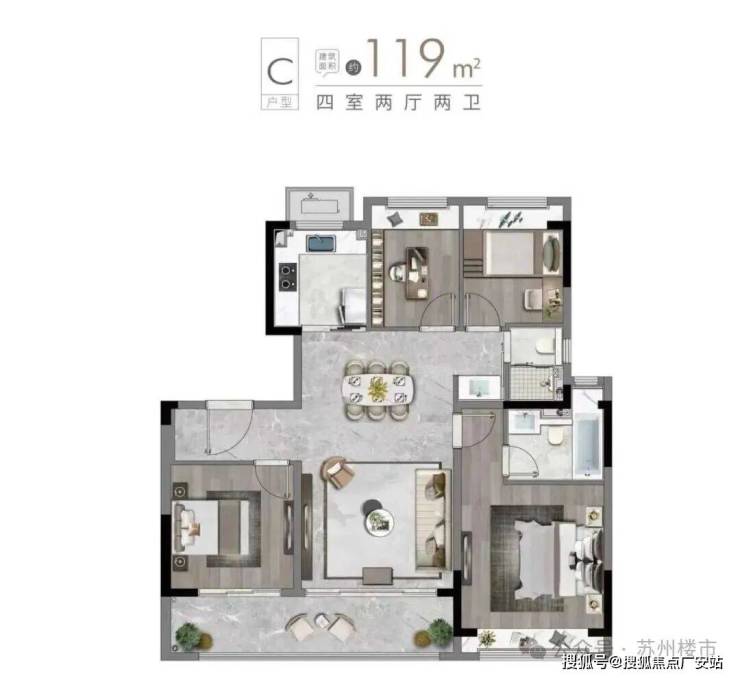 价格优势:总价180万左右,就能拿下园区飞地的精装洋房4房,在苏州市场难寻对手。