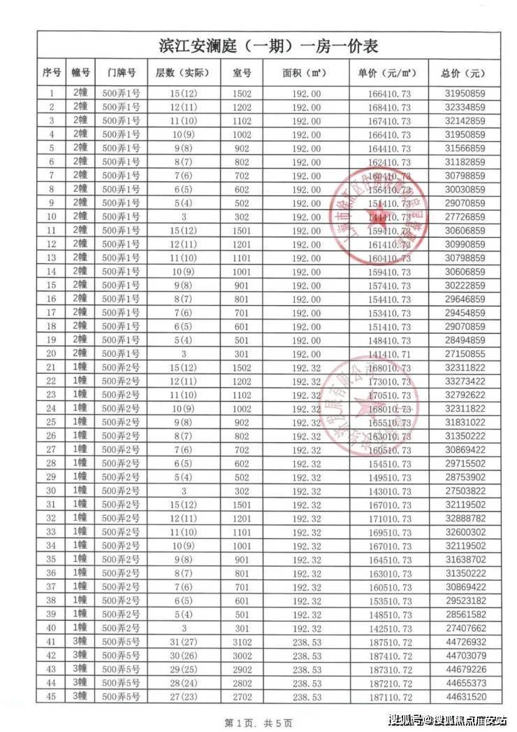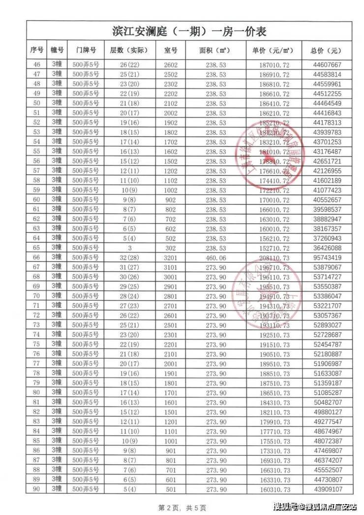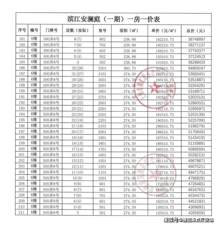 【安澜上海】一房一价表:
