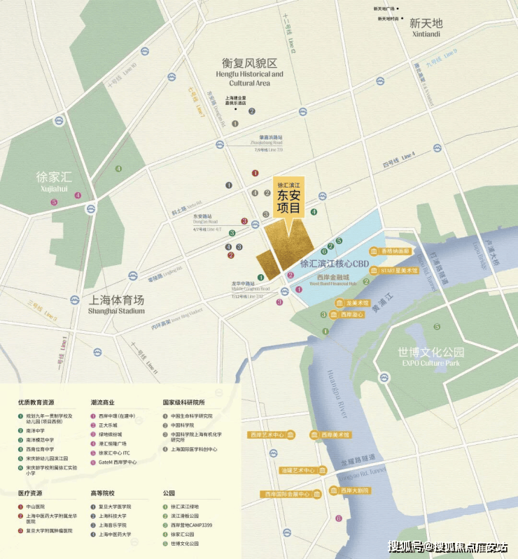 徐汇滨江东安项目【安澜上海】占位徐汇滨江核芯CBD,无缝连接徐家汇、淮海路等传统核心商圈,未来项目依托枫林路片区雄厚的医疗健康产业基础,与西岸金融城(西岸中環)、西岸数字谷(均预计2027年开业)形成功能互补,打造徐汇滨江产业发展的“第三极”。(数据源于上海规划资源)