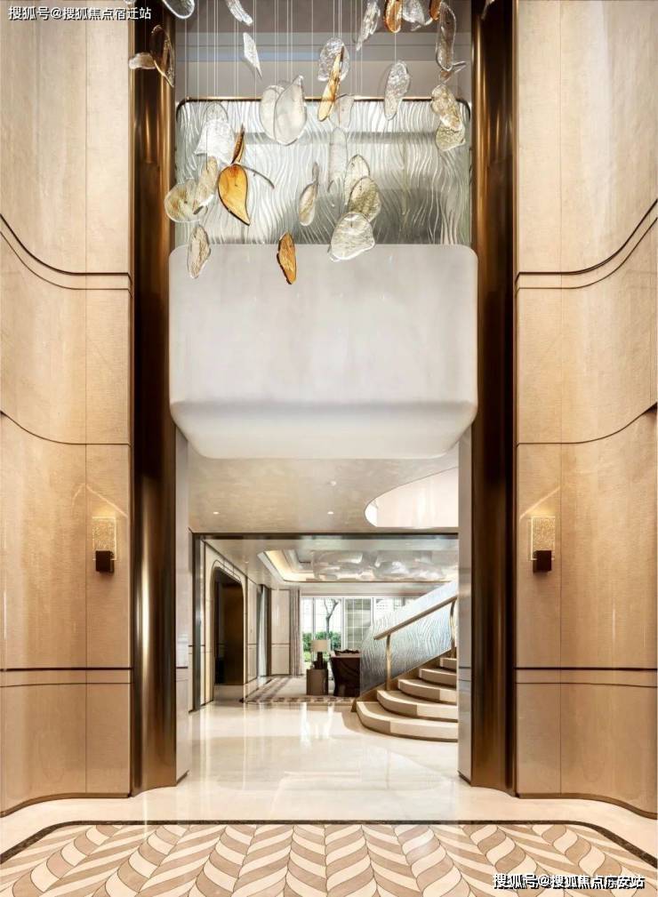 上海浦东绿宝园·翡梵售楼处电话☎:400-8657-114(官方售楼处预约看房热线)ARTDECO风格的黑白拼花大理石地面与大面积镜面墙设计,延展了入户空间的视觉深度。如璀璨星环水晶环形吊灯,增添了归家的仪式感。奢华的玉石背景墙与法式经典家具相映生辉,在静谧与华美之间,彰显翡梵空间的非凡气度。餐厅与西厨之间,八扇手工定制的电动旋转立门,宛如天工造物般的巧思令人惊艳。每一扇门均镶嵌意大利SICIS内含铂金的奢华马赛克,天然贝壳面板在灯光下折射出璀璨光芒。门扇的开合间,实现了空间的灵动转换,私密与开放的完美平衡,为社交与生活增添无限乐趣。每一处细节都经过大师级的匠心打磨,呈现出一场视觉与感官的极致盛宴