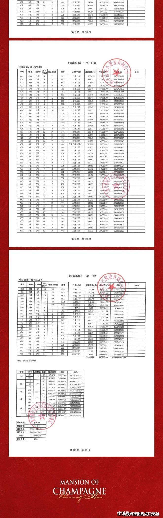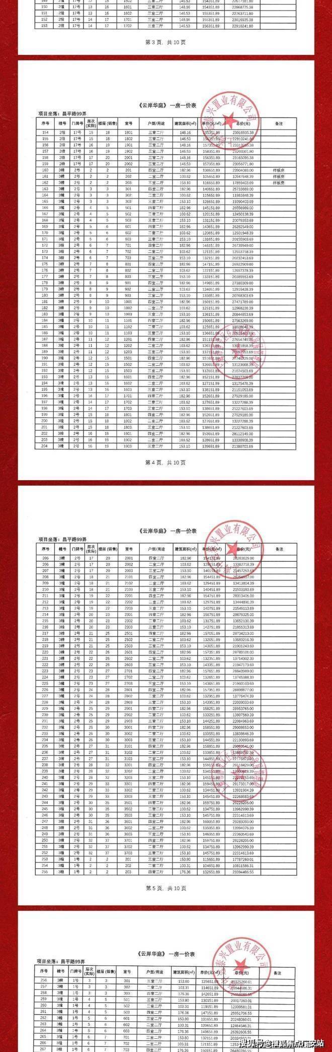 项目一房一价表▼