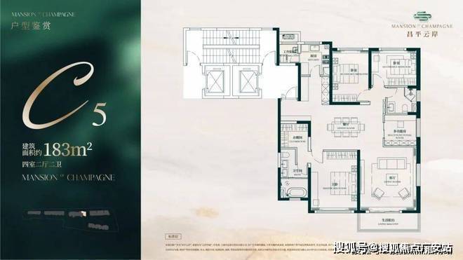 建面约183㎡4房2厅2卫户型▼
