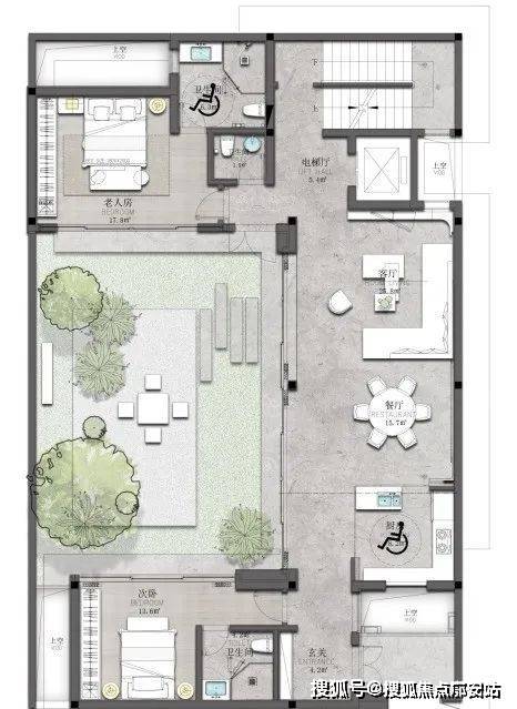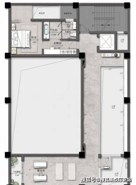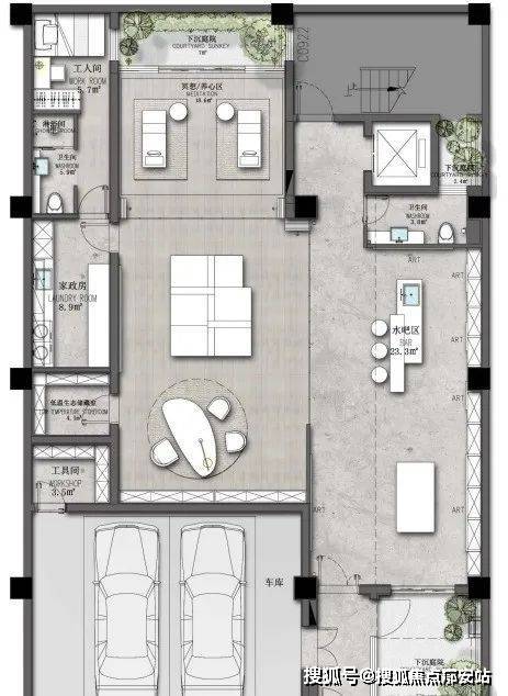 ·地下室6米挑高客厅+下沉式花园采光天井